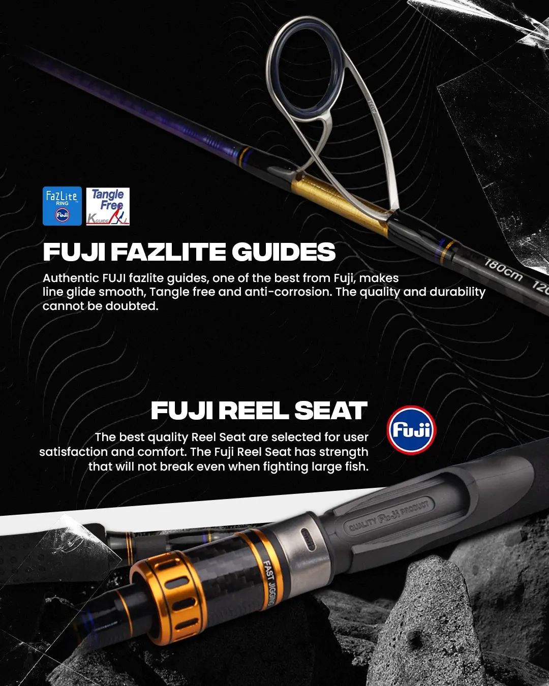 Further enhanced by X-Cross Carbon technology, the Iroly Perseus delivers exceptional power and durability, making it perfect for battling large fish with confidence. The inclusion of Fuji Fazlite guides, known for their smooth line glide, tangle-free performance, and resistance to corrosion, ensures seamless operation in any fishing environment.